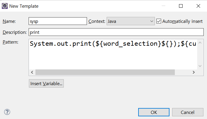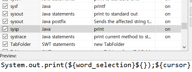 sysp, sysf를 통해 각각 System.out.print(), System.out.printf()를 쓰기 위해 등록할 거임